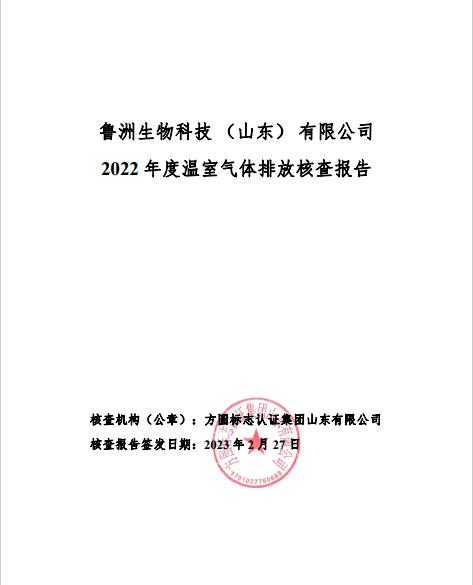 魯洲生物科技(山東)有限公司2022年度溫室氣體排放核查報告